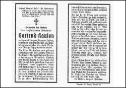 Fräulein; Eltern: Johann Kaulen u. Hedwig geb. Wendland; früher Tod des Vaters; musste mitsorgen für Unterhalt der Familie; jahrelanges Leiden |