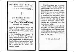 ∞ 30.1.1897 Johann Wallraf, † 12.1.1922; 5 K., davon 2 †; lange Todeskrankheit |