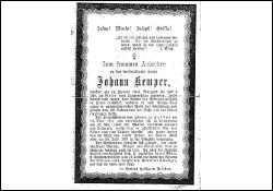 Lungenschlag; ∞ in Nievenheim 23.5.1838 Maria Gertrud Häuser aus Ückerath, † 30.7.1876; 4 K., davon 1 mit 1 J. †; |