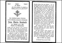 Mitgl. Mütterverein; ∞ 1904 Wilhelm Esser, am 25.3.1916 im 1. Weltkrieg gefallen; 3 K.; ∞ 27.1.1922 Josef Rembold |