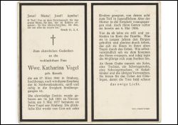 ∞ 5.5.1877 Peter Vogel aus Straberg, † 6.5.1906; 10 K., davon 8 †; |