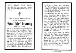 ∞ 23.10.1924 Josef Breunig aus Heßloch b. Worms; Tochter Margret geb. am 26.2.; von den 8 Brüdern 3 in Kriegsgefangenschaft; Druck in Anstel |