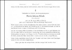 ∞ 25.11.1904 Katharina Schmitz, † 1957; 12 K., davon 1 Sohn †; langes Leiden |