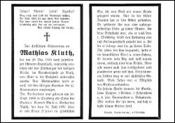 Jahrelange Krankheit; Eltern: Konrad Kluth u. Katharina geb. Busch; ∞ 31.7.1937 Klara Schnee; 1 K.; Teilnahme 1. Weltkrieg, russ. Kriegsgefangenschaft; umsorgte seine Mutter bis zu ihrem Tod |
