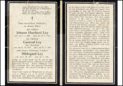 Tod bei Luftangriff, Opfer 2. Weltkrieg; Eltern: Johann Eberhard Ley u. Gertrud geb. Giesenfeld; mit ihrer kleinen Schwester Gisela war sie noch bis zuletzt im Elternhaus |