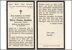 Mitgl. Mütterverein; ∞ 5.11.1894 Franz Janßen; 11 K. |