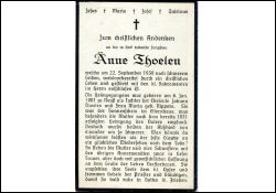 Jungfrau; schweres Leiden; Eltern: Johann Thoelen, † 1931, u. Maria geb. Rippers; |