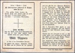 Gefallener 2. Weltkrieg; Eltern: Peter Rippers u. Maria geb. Frangen; 1.11.1943 Einberufung; Druck in Anrath |
