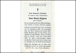 ∞ 9.5.1922 Peter Rippers, † 1959; 6 K., davon 2 jugendl. †, 1 Sohn im 2. Weltkrieg †; |