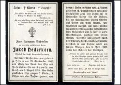 ∞ 1.8.1874 Josephine Grewidowsky aus Goch; 5 K., davon 1 Sohn mit 14 J. †; Druck in Geldern |