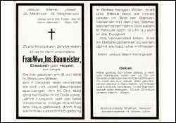 ∞ 7.10.1896 Josef Baumeister aus Langst, † 15.10.1922; Wohnort Langst; Jahre hindurch infolge Krankheit ans Haus gefesselt; |