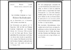 Eltern: Gottfried Kollenbroich u. Elisabeth geb. Schmitz; ∞ 13.1.1906 Anna Beivers, † 31.10.1955; 4 K., davon 1 jugendl. †; in den letzten Jahren leidend |