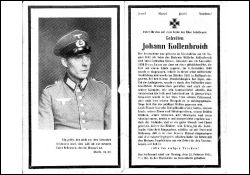 Gefallener 2. Weltkrieg; Eltern: Wilhelm Kollenbroich u. Anna Catharina geb. Breuer; ∞ 18.11.1938 Rosa Zaun aus Zons; 1 K.9.12.1940 Einberufung; Okt. 1941 in Russland eingesetzt; beigesetzt bei Mag. |