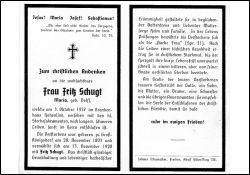 ∞ 13.11.1920 Fritz Schugt; 1 überlebender Sohn |