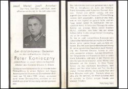 Gefallener 2. Weltkrieg; Eltern: Franz Konieczny u. Hubertine Gertrud geb. Koenen; Ehrenfriedhof Sergejewka b. Kramatorsk |