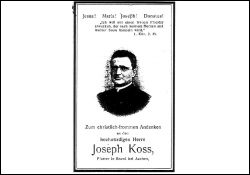 20.7.1884 Priesterweihe Eichstätt; mehrere Jahre Vikar in Efferen und Frechen; 1896-1902 Pfarrer in Gohr; 1902 Pfarrer in Brand b. Aachen; Arbeiterverein lag ihm am Herzen; 1908 Kloster der franziskanerinnen; Herzleiden; 5.8. Schlaganfall |