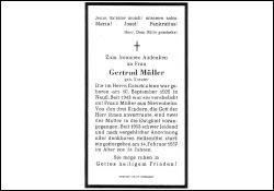 ∞ 1943 Franz Müller aus Nievenheim; 3 K., davon 2 †; seit 1953 schwer leidend; Druck in Dormagen |