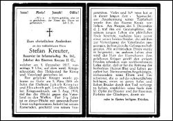 Gefallener 1. Weltkrieg; Eltern: Jakob Kreuter u. Elisabeth geb. Leuffen; 3.8.1914 Einberufung; |