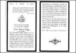 ∞ 2.5.1914 Franz Kopp; 3 K.; schmerzhafte Krankheit; starb nach Operation |