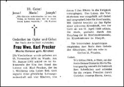 ∞ 29.1.1902 Karl Precker, im 1. Weltkrieg gefallen; 4 K., davon 2 †; schwere Krankheit |