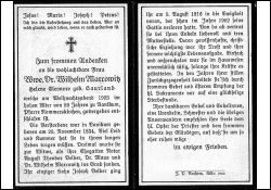Sie wurde dreimal Witwe: ∞ Notar August Theodor Velder, †; ∞ Dr. Maus, †; ∞ Dr. Wilhelm Marcowitz, †; der einzige Sohn Joseph Velder † 9.8.1916, dessen Gattin † 1902; von da ab vertrat sie die Mutterstelle bei ihren Enkeln; Druck in Köln |
