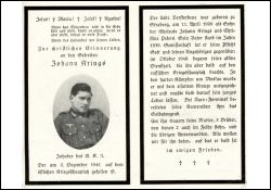 Gefallener 2. Weltkrieg; Eltern: Johann Krings, † 1939, u. Christine geb. Peters; Grab bei Naro-Forminsk |