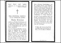 Eltern: Hermann Josef Krücken u. Gertrud geb. Schmitz; Jungfrau; monatelanges Krankenlager |