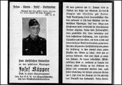 Gefallener 2. Weltkrieg; Eltern: Heinrich Küpper u. Christine geb. Falter; Studium der kath. Theologie; seit 1940 unter den Fahnen; 1941 an der Ostfront zum 1. Mal verwundet |