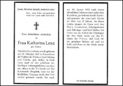 Eltern: Josef Kürten u. Cäcilie geb. Bellen; ∞ Erich Lenz, aber sie starb kurz vor der kirchl. Traung; Druck in Benrath |