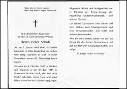 ∞ 27.6.1911 in Odenthal Christine Geuß, † ; 6 K., davon 2 †, Mitglied der Friseur-Innung u. d. Sebastianus-Schützenbruderschaft |