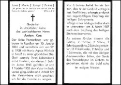 Schlaganfall; ∞ 29.6.1908 Maria Agnes Winkels in Neuss; 6 K., davon 1 Sohn 1945 im 2. Weltkrieg gefallen u. 1 Tochter 1952 †; seit 5 J. leidend |