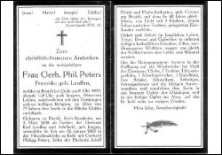 Eltern: Karl Leuffen u. Adelheid geb. Jungen; ∞ 30.1.1895 Gerhard Philipp Peters aus Broich, Sohn von Adolf Peters u. Maria Katharina geb. Cremer; 2 K. |