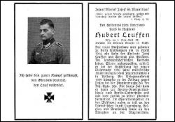 Gefallener 2. Weltkrieg; Eltern: Josef Leuffen u. Gertrud geb. Obladen; seit 1936 bei der Wehrmacht; Feldzüge in Polen, dann Frankreich, dann Russland; 7.12.1941 schwer verwundet; zwei Brüder im Heeresdienst |