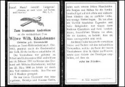 ∞ 14.2.1882 zu Werden Wilhelm Kückelmann, † 29.3.1900 in Schuir; |