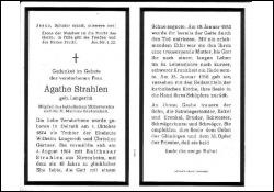 Mitgl. kath. Mütterverein u. St. Matthias-Bruderschaft; Eltern: Wilhelm Longerich u. Christine geb. Gärtner; ∞ 4.8.1904 Balthasar Strahlen aus Nievenheim, † 19.1.1953; 1 Sohn; Druck in Dormagen |