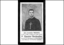3.10.1899 Eintritt in das Missionshaus zu Steyl; Priesterweihe 29.9.1911 (Priester der gesellschaft des Göttl. Wortes); Missionar am Sambesi in Afrika (Sambesi-Mission damals vom Orden neu übernommen); Krieg (Erster Weltkrieg) mit Portugal riss ihn aus seinem missionarischen Wirken; portugiesische Kriegsgefangenschaft; nach Entlassung Erholung im Mutterhaus zu Steyl; Erholungsurlaub in der Heimat |