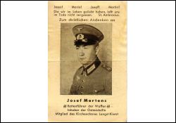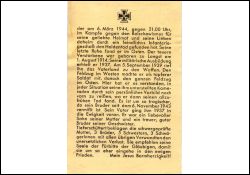 Gefallener 2. Weltkrieg; Rottenführer der Waffen-SS; Mitgl. Kirchenchor Langst-Kierst; 5.9.1939 Einberufung; sein Bruder seit dem 6.11.1943 vermisst; Vater † 1937; |