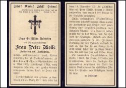∞ 14.11.1901 Peter Molls; 2 K., davon 1 †; schweres Leiden |