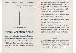 ∞ 13.8.1897 Anna Knauf, † 1943; 12 K., von denen noch 1 Tochter lebt (Neukirchen) |