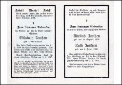 Opfer 2. Weltkrieg; starb mit Mutter Elisabeth Janßen (*20.5.1904) und Schwester Ruth (*1.2.1936) durch Feindeinwirkung |