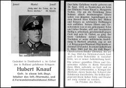 Gefallener 2. Weltkrieg; Bruder Christian 16.8.1942 gefallen; Eltern: Franz Knauf u. Margarete geb. Nollen |