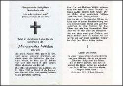 Eltern: Matthias Eßer u. Klara geb. Schmitz; ∞ Matthias Wilden, nach kurzer Ehe 1944 im 2. Weltkrieg gefallen; 1 Tochter; Pfarrgemeinde Neubottenbroich |