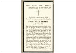 Eltern: Heinrich Nieendick u. Dorothea geb. Schmitz; ∞ 26.8.1922 Jakob Helten; 1 K.; lange Jahre körperliche Gebrechen; Wohnort: Schiefbahn |