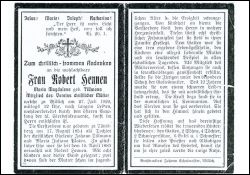 Eltern: Johann Tillmann u. Maria Juliana geb. Platen; ∞ 10.4.1883 Robert Hennen; 8 K., davon 2 jugendl. †; Mitgl. Mütterverein; seit 12 J. schweres Leiden |
