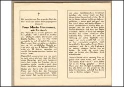 Längeres Leiden; Eltern: Adam Dornbusch u. Sibilla geb. Gehlen; ∞ 11.5.1940 Jakob Hermanns; ihr Mann war 4 J. in Kriegsgefangenschaft; in dieser Zeit von heimtückischer Krankheit befallen; bei Rückkehr des Mannes war sie todkrank; Wohnort: Willich |