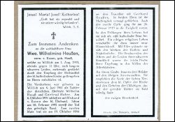 Langes, schweres Leiden; Eltern: Wilhelm Hauß u. Gertrud geb. Hoter; ∞ 6.10.1891 Richard v. Essen, † 10.2.1892; ∞ 19.10.1904 Gerhard Heußen, † 26.2.1949; kinderlos |