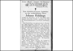 ∞ 15.11.1895 Katharina Hermanns aus Tüschenbroich; 7 K., davon 2 früh †; 1 Sohn im 1. Weltkrieg gefallen; 1 weiterer Sohn vor 3 J. in der Erft verunglückt |
