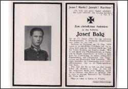 Gefallener 2. Weltkrieg; wg. Tod des Vaters war er bald nach der Schulzeit der Ernährer der Familie; Druck in Euskirchen |