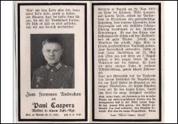 Gefallener 2. Weltkrieg; Eltern: Wilhelm Caspers u. Carola geb. Pasch; 25.5.1942 an die Ostfront |