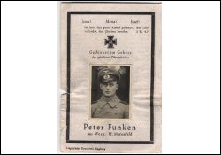 Gefallener 2. Weltkrieg; Eltern: Peter Josef Funken u. Katharina geb. Schmitz; Vater früh †; 30.4.1940 Einberufung; ∞ 25.11.1940 Luise Schumacher aus Neßhofen; 3 Jahre auf dem Balkan |